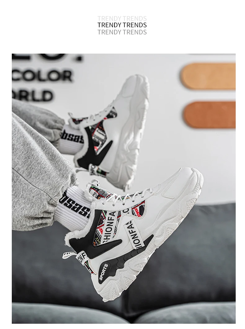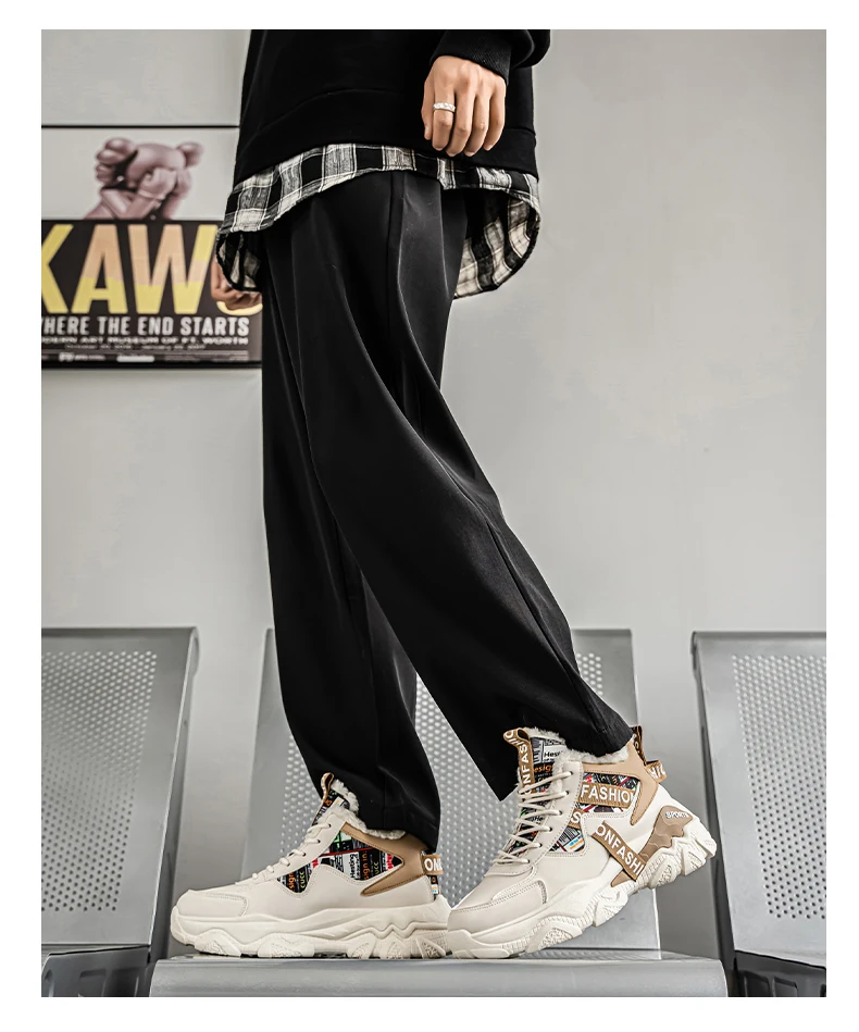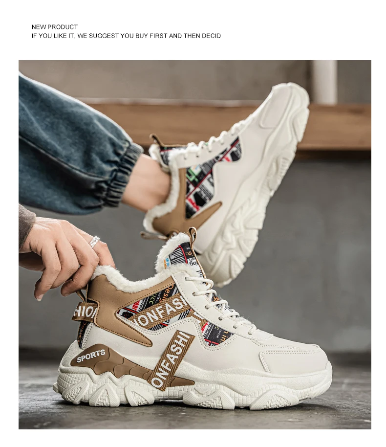 Built for durability and performance, these shoes feature a sturdy PVC outsole that is hard-wearing and sweat-absorbent, keeping you confident on any surface. With a stylish patchwork pattern and a slight height-increasing feature, they effortlessly blend fashion with functionality—perfect for winter outings or casual sports activities.