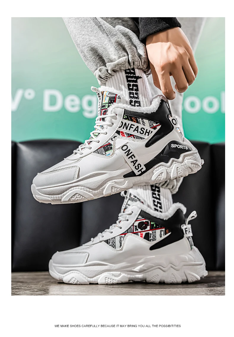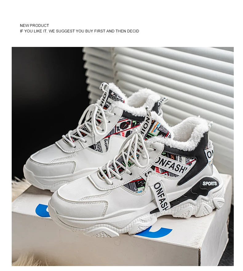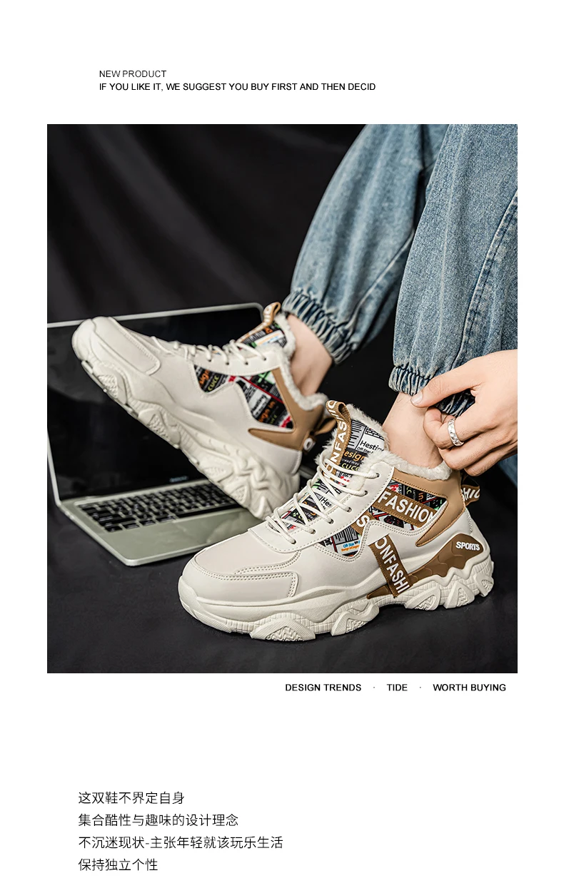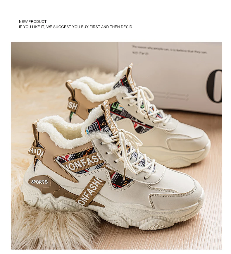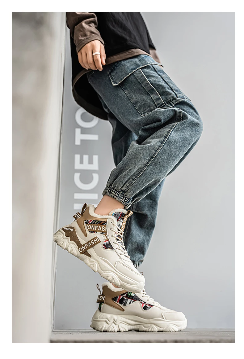 Fashion high-top plus velvet plus cotton daddy sports cotton shoes Mid-top shoes Casual sneaker Round toe Winter sport shoes for men High boots Platform sports shoes New Loafers Wear-resistant