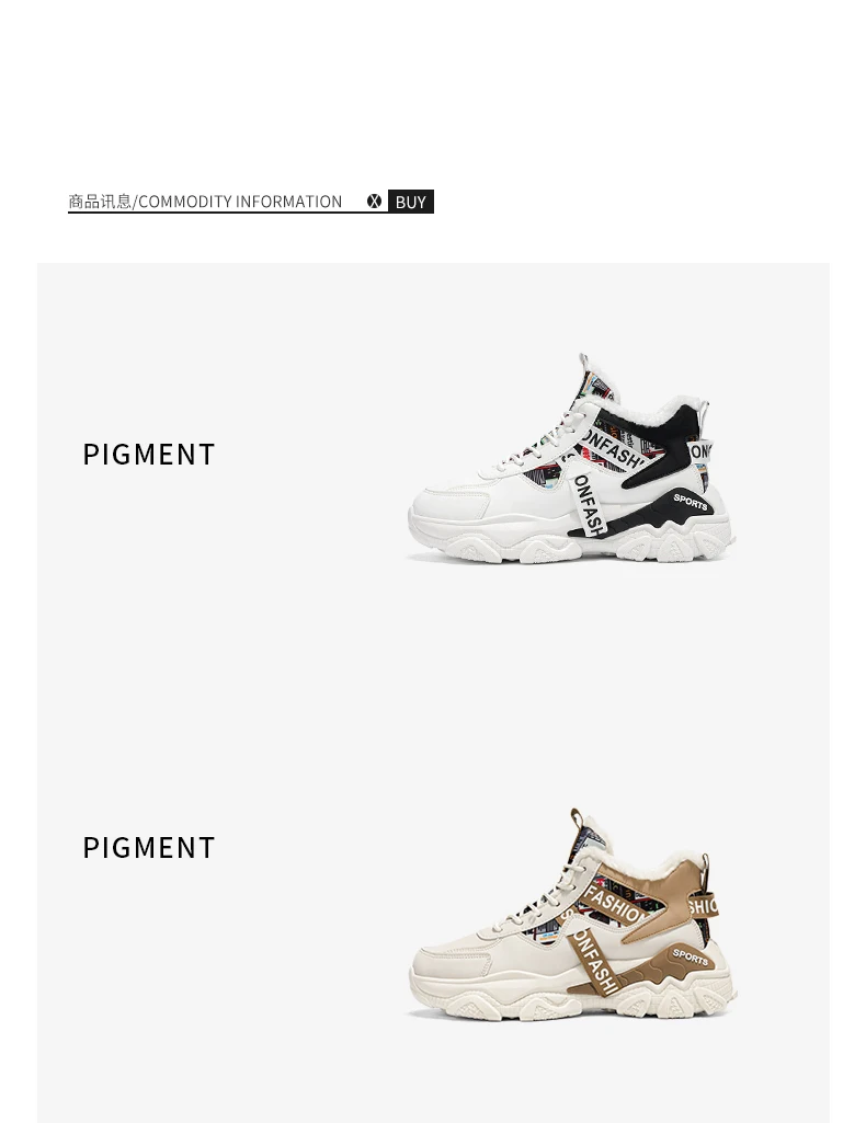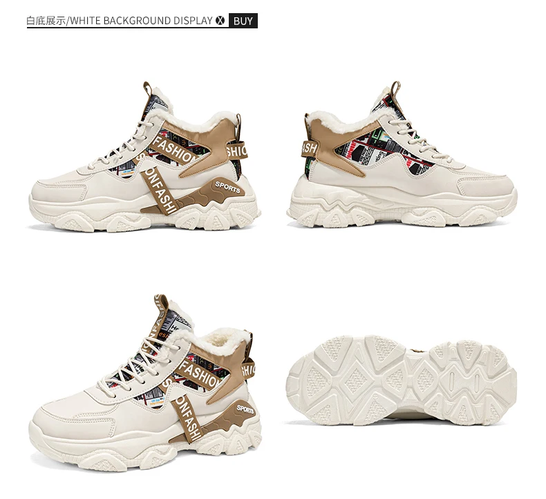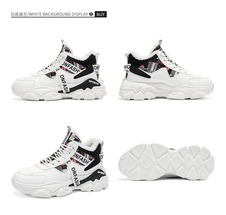 Fashion high-top plus velvet plus cotton daddy sports cotton shoes