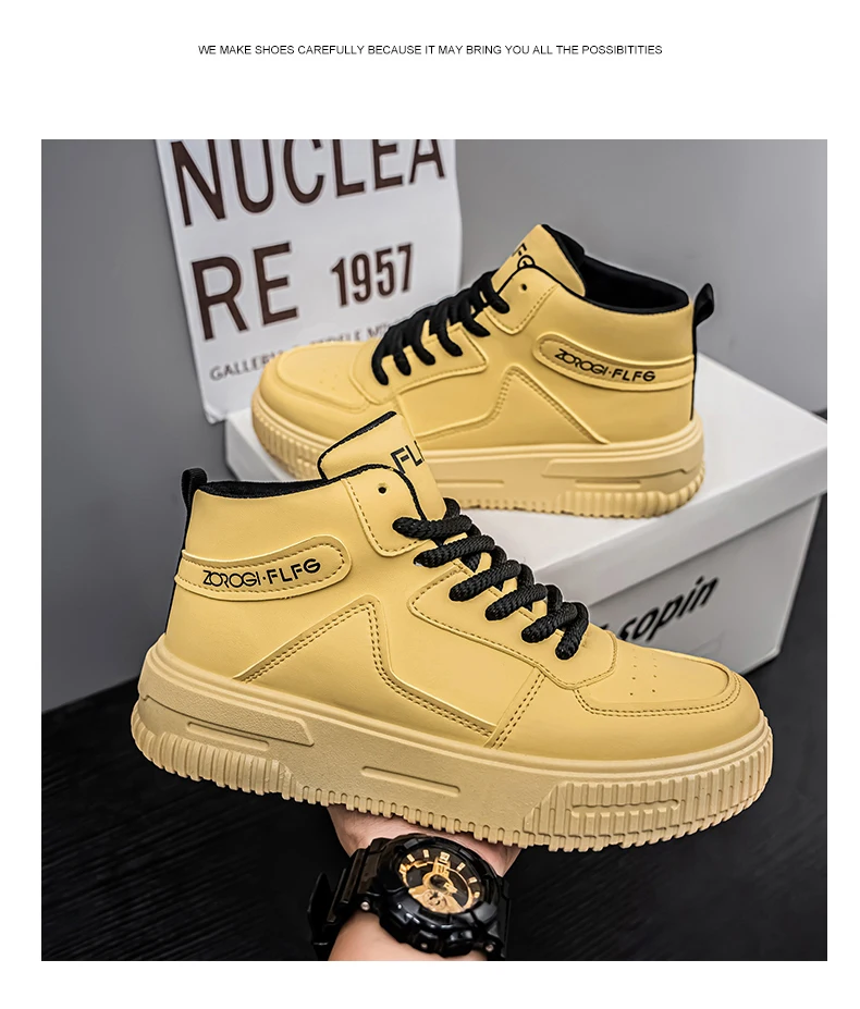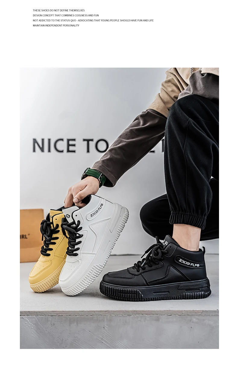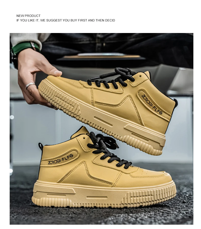 Perfect for spring and autumn, these casual sneakers are waterproof, sweat-absorbent, and resistant to odors, making them ideal for everyday wear. The artificial leather upper offers a modern look with above-ankle coverage, while the hard-wearing construction ensures they keep up with your active lifestyle. A stylish, functional choice for men who want both performance and fashion in one.
